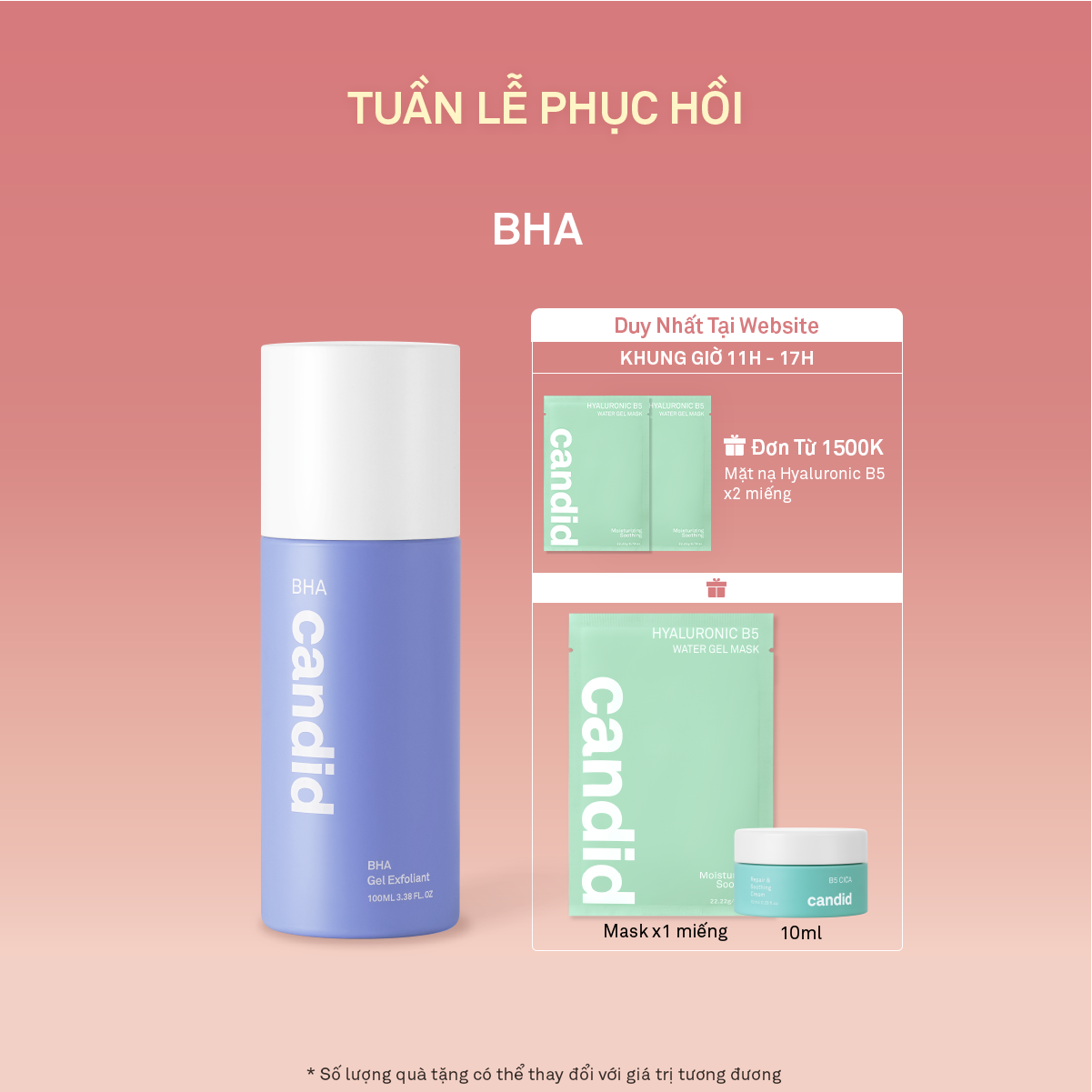 Candid BHA: Giảm thiểu dầu thừa và sợi bã nhờn; kháng viêm, kháng khuẩn; thu nhỏ lỗ chân lông; Giảm mụn ẩn và mụn đầu đen, thích hợp cho da dầu, hỗn hợp thiên dầu.