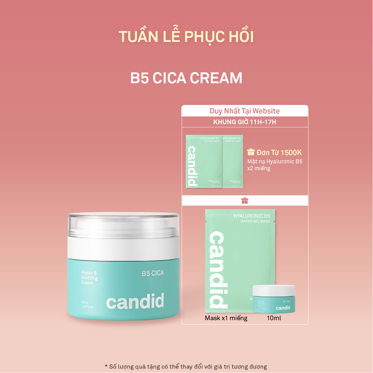 Candid B5 Cica: Củng cố hàng rào bảo vệ da, từ đó giảm thiểu tối đa các dấu hiệu kích ứng da, làm đều màu và sáng da, phù hợp với mọi loại da.