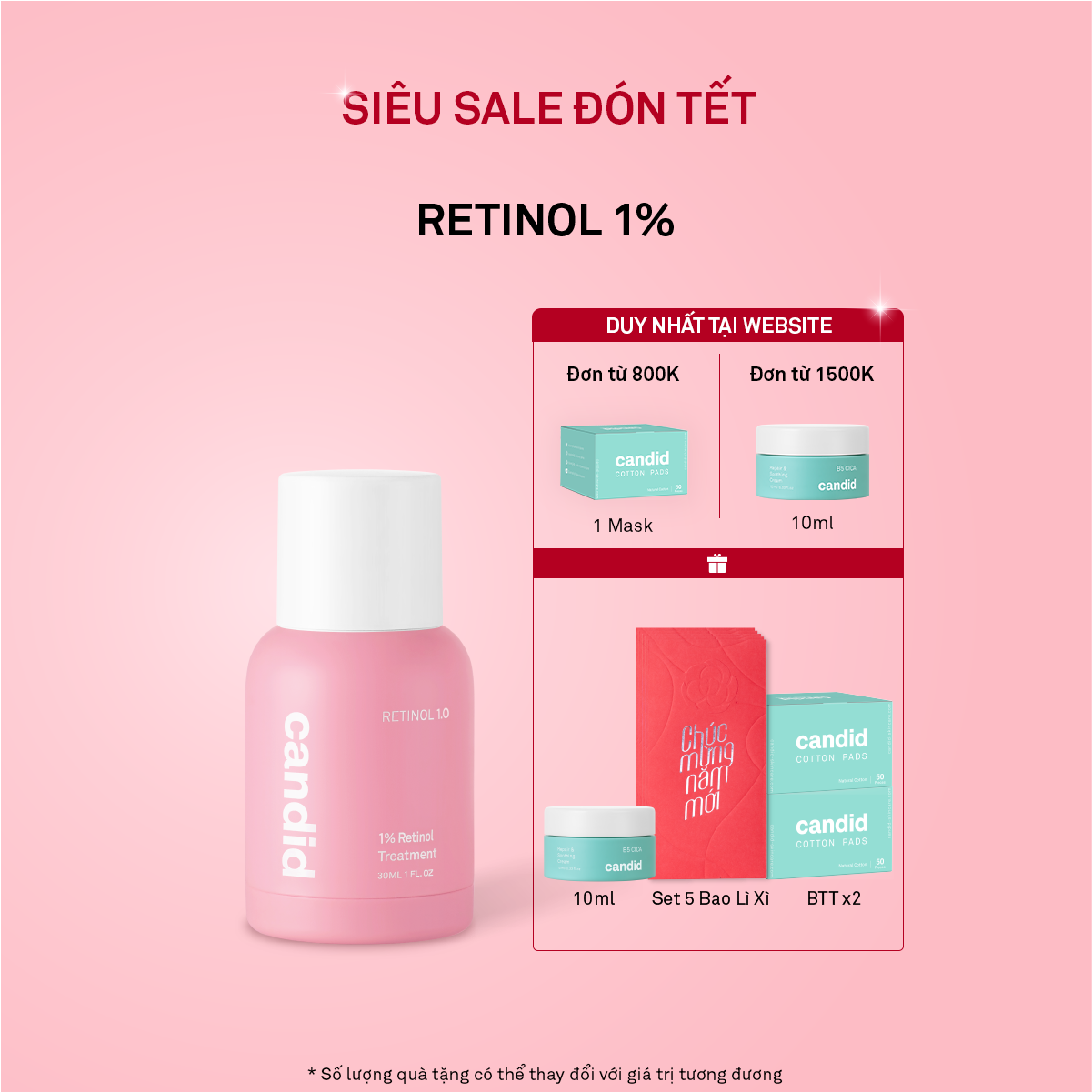 Sản phẩm đề xuất: Retinol Candid 0.5% hoặc Retinol Candid 1%