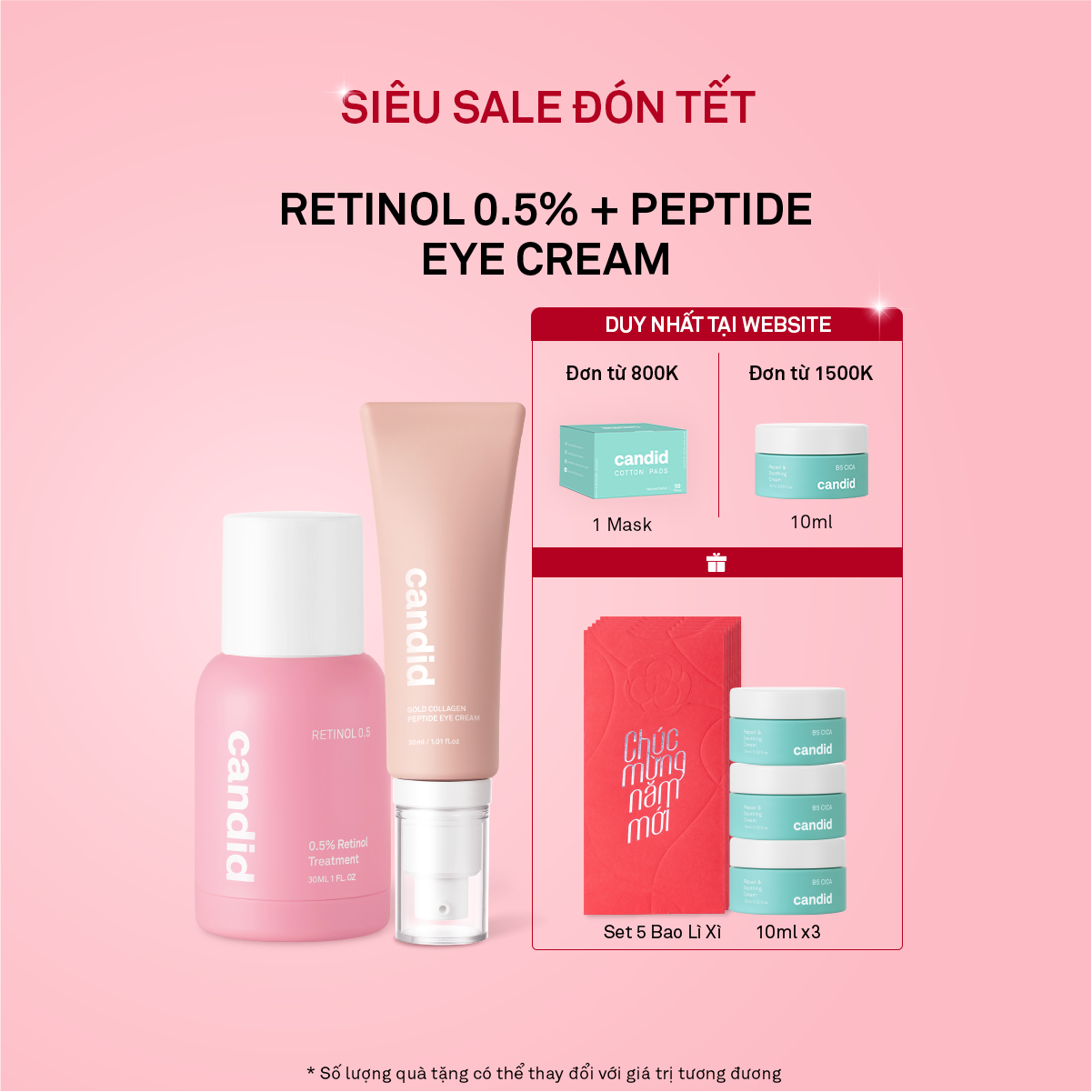 Bộ sản phẩm Retinol 0.3% & AHA PHA & Kem mắt Gold Collagen Peptide & Hộp 10 Mask Hyaluronic B5 giúp mang lại làn da tươi mới, rạng rỡ hơn