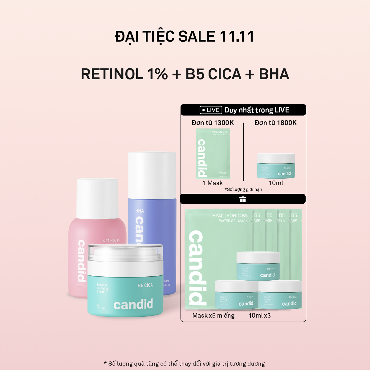 Combo Retinol 1.0% & Tẩy tế bào chết BHA & Kem Dưỡng B5 Cica