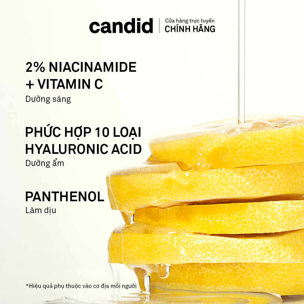 - Phức hợp 2% Niacinamide + Vitamin C: Làm sáng da, đều màu da, giảm xỉn màu và chống oxy hóa.