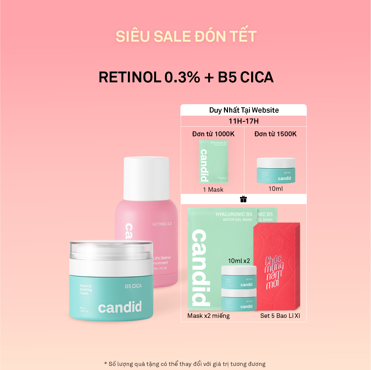 Combo Retinol 0.5% và Mặt nạ Hyaluronic B5 10 miếng